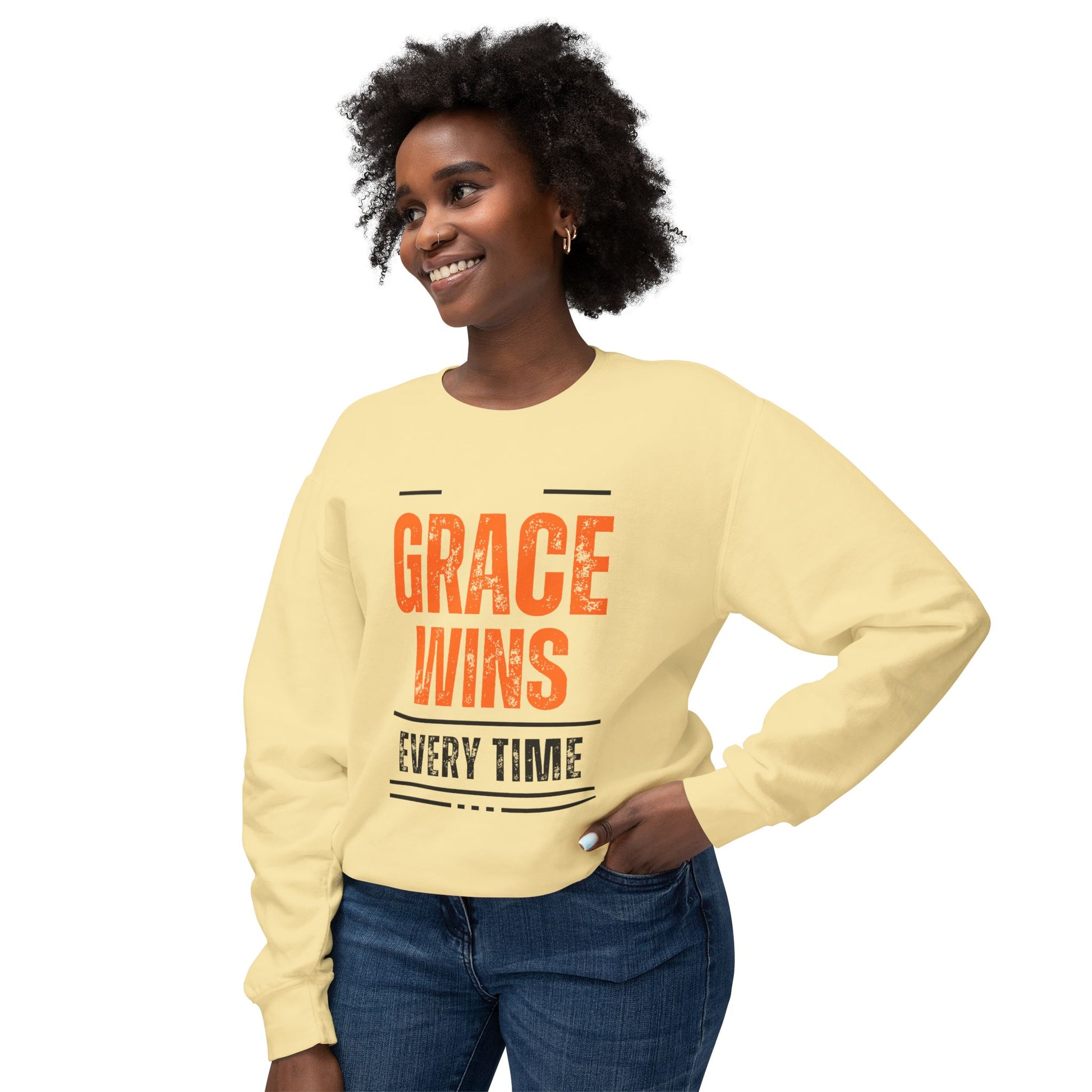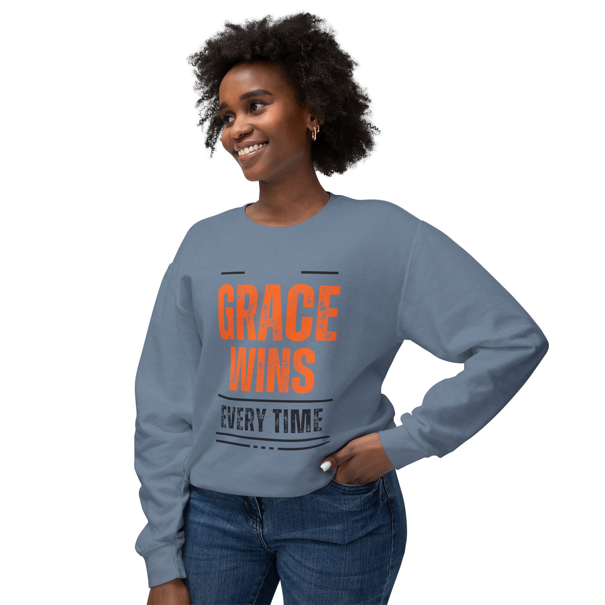 Grace Wins Crewneck Sweatshirt - Inspirational Unisex Lightweight Apparel
