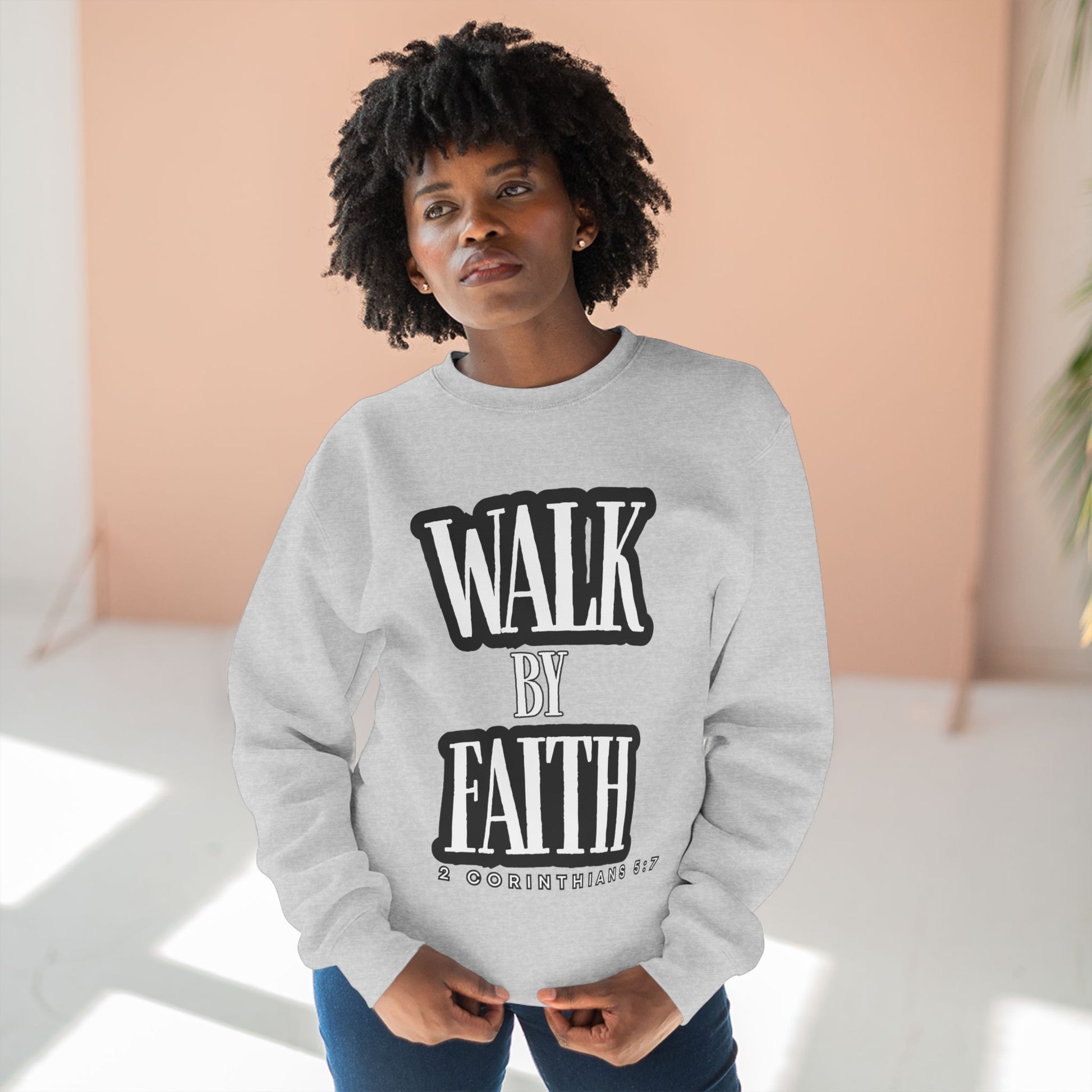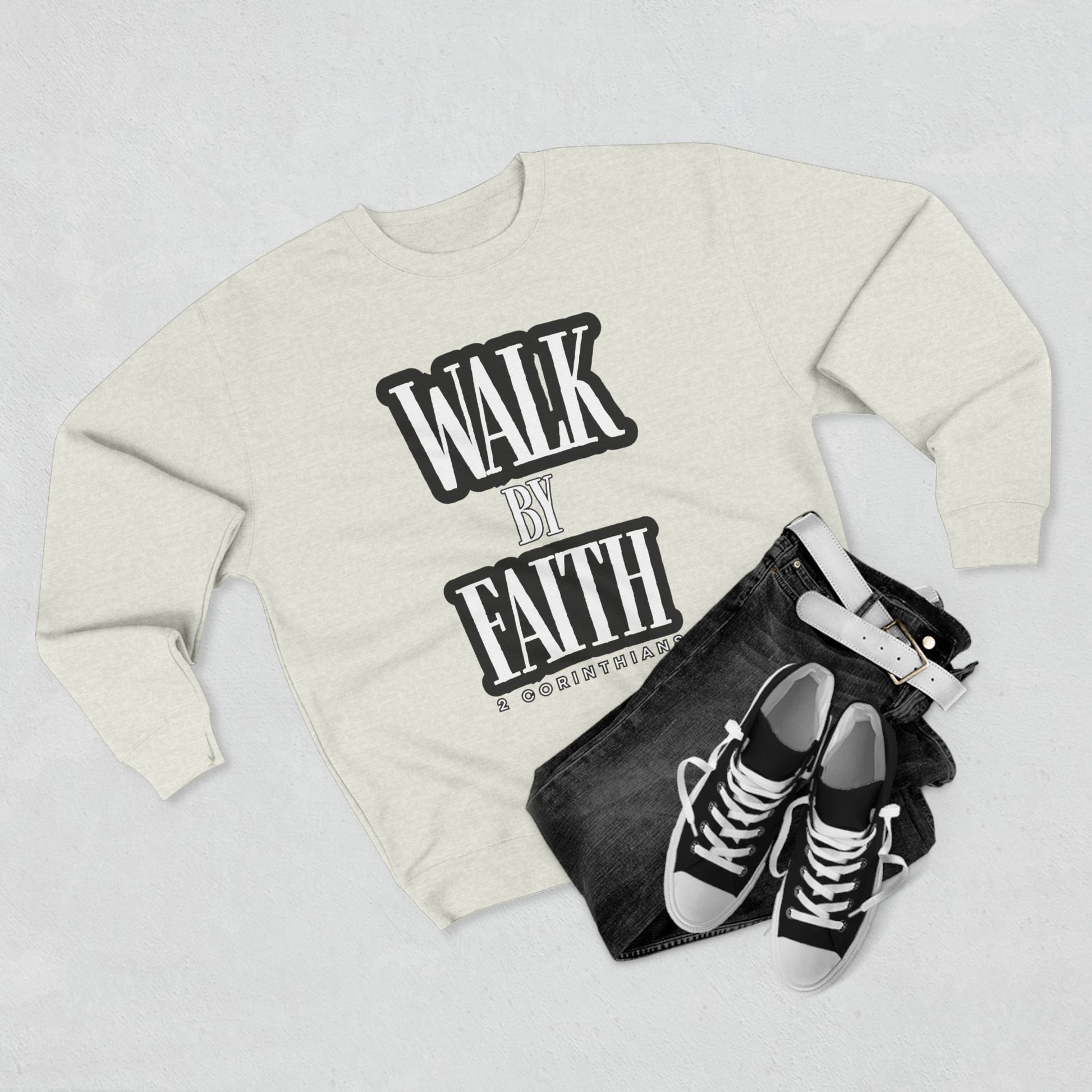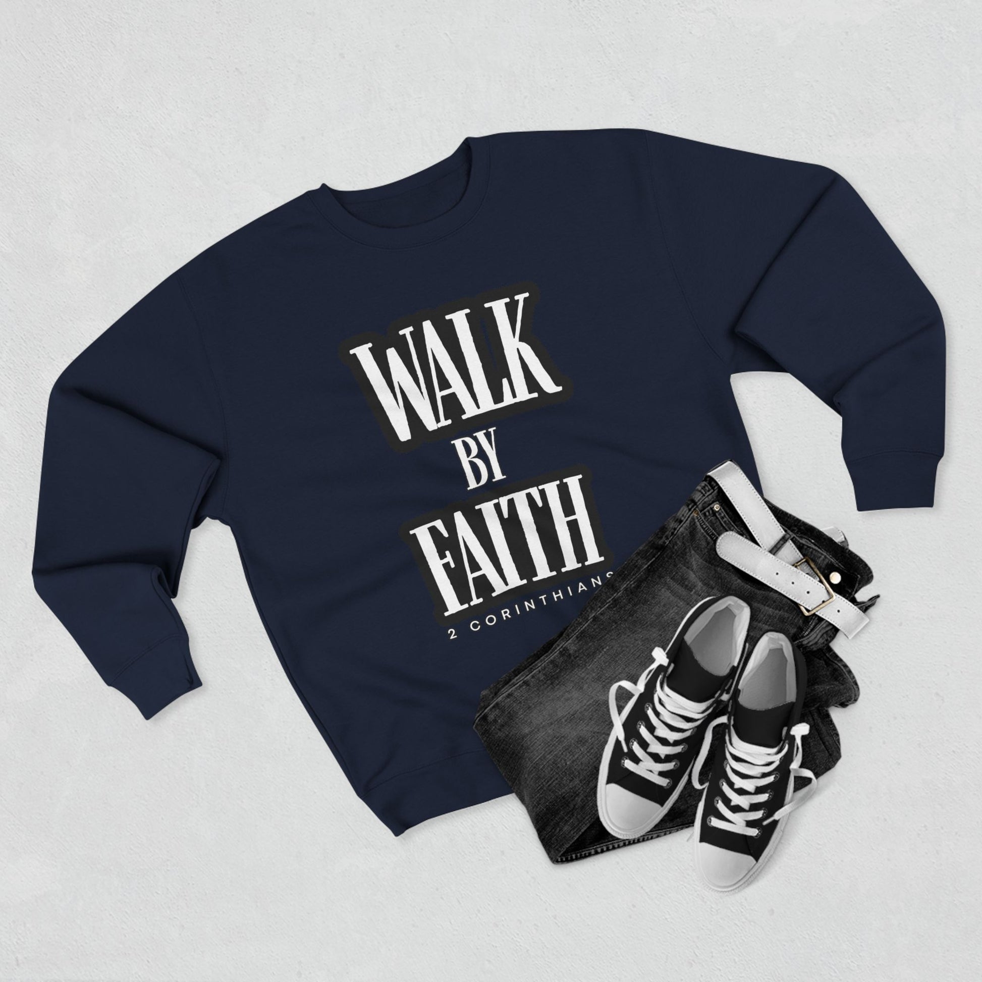 Inspirational Crewneck Sweatshirt - "Walk by Faith" with Religious Quote