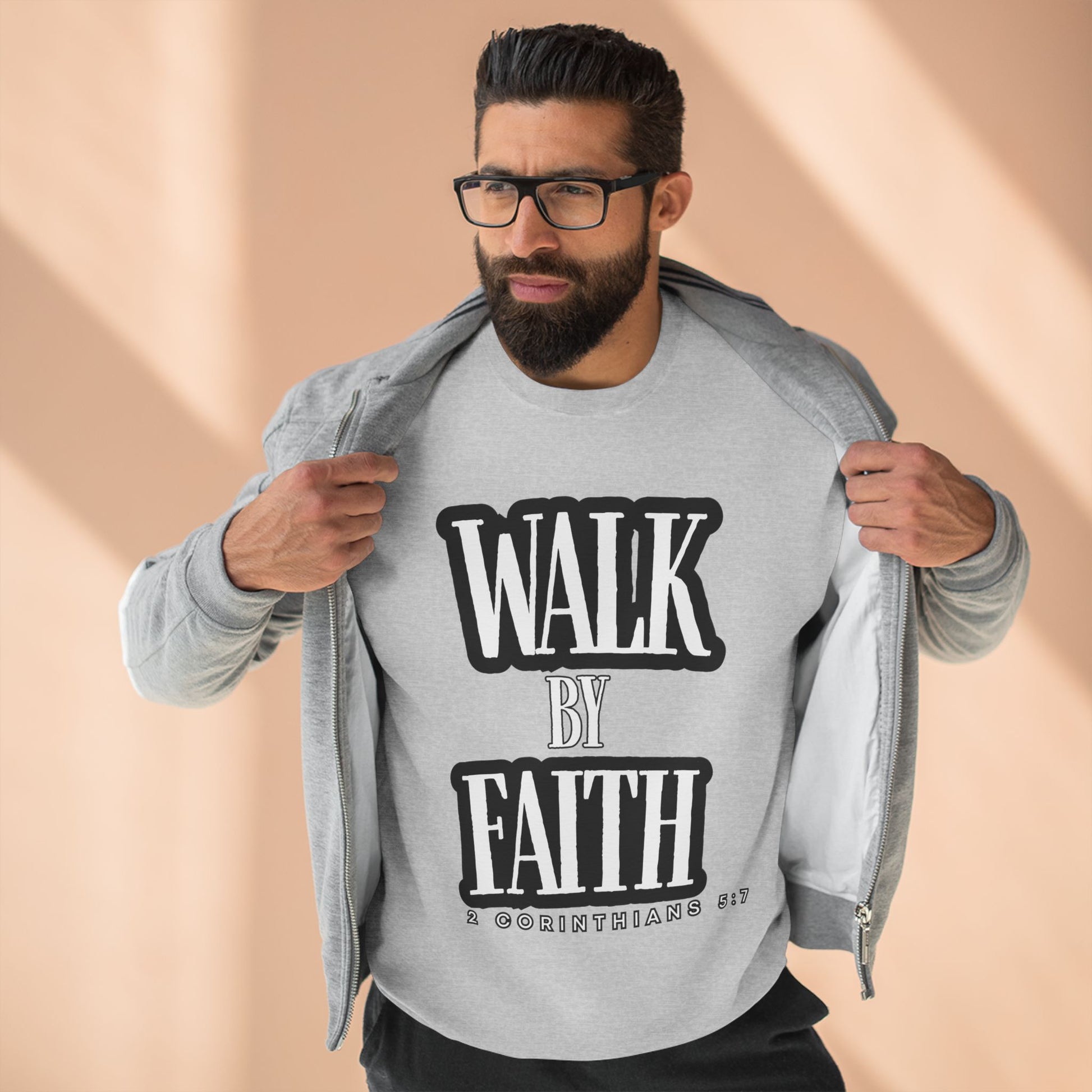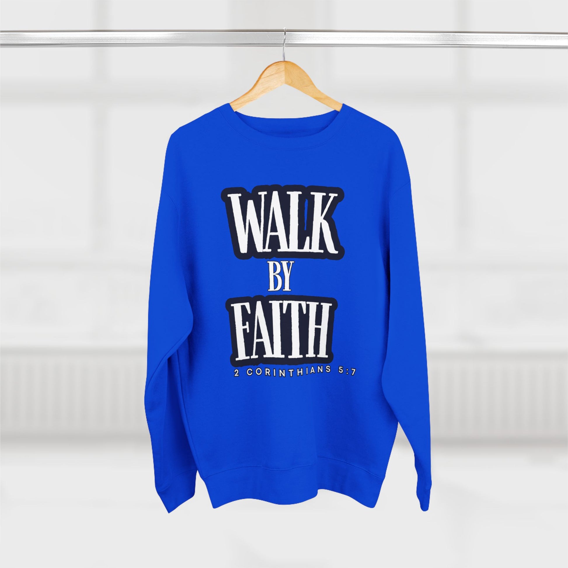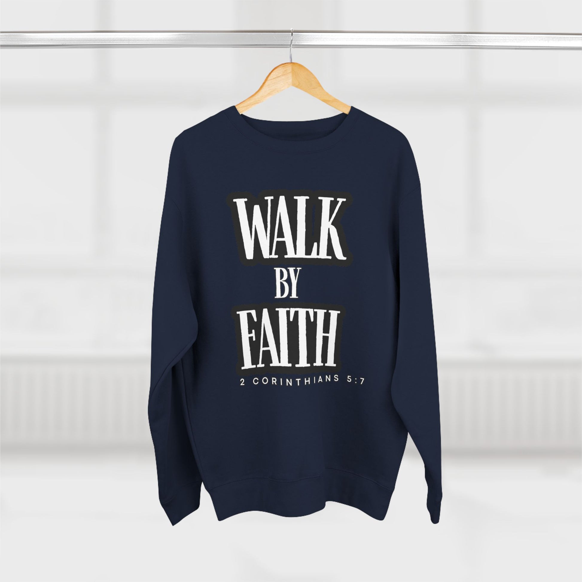 Inspirational Crewneck Sweatshirt - "Walk by Faith" with Religious Quote